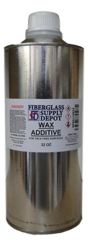 Tack Free Additive (or some call it wax) ensures the final coat of resin and gel coat hardens tack free. How it works is when mixed with your gel coat or resin it rises to the surface and blocks the surface from the oxygen thus allowing the resin or gel coat to dry tack free. Generally you would use 1oz per quart and 4oz per gallon. Once added mix well as additive continues to separate from gel coat/resin.